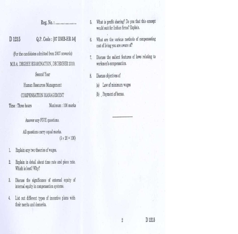 Get Instant Access to PDF Read Books Compensation Management Mba Question Papers at our eBook Document Library. 4/11 Compensation Management Mba Question Papers ... Fetch Here